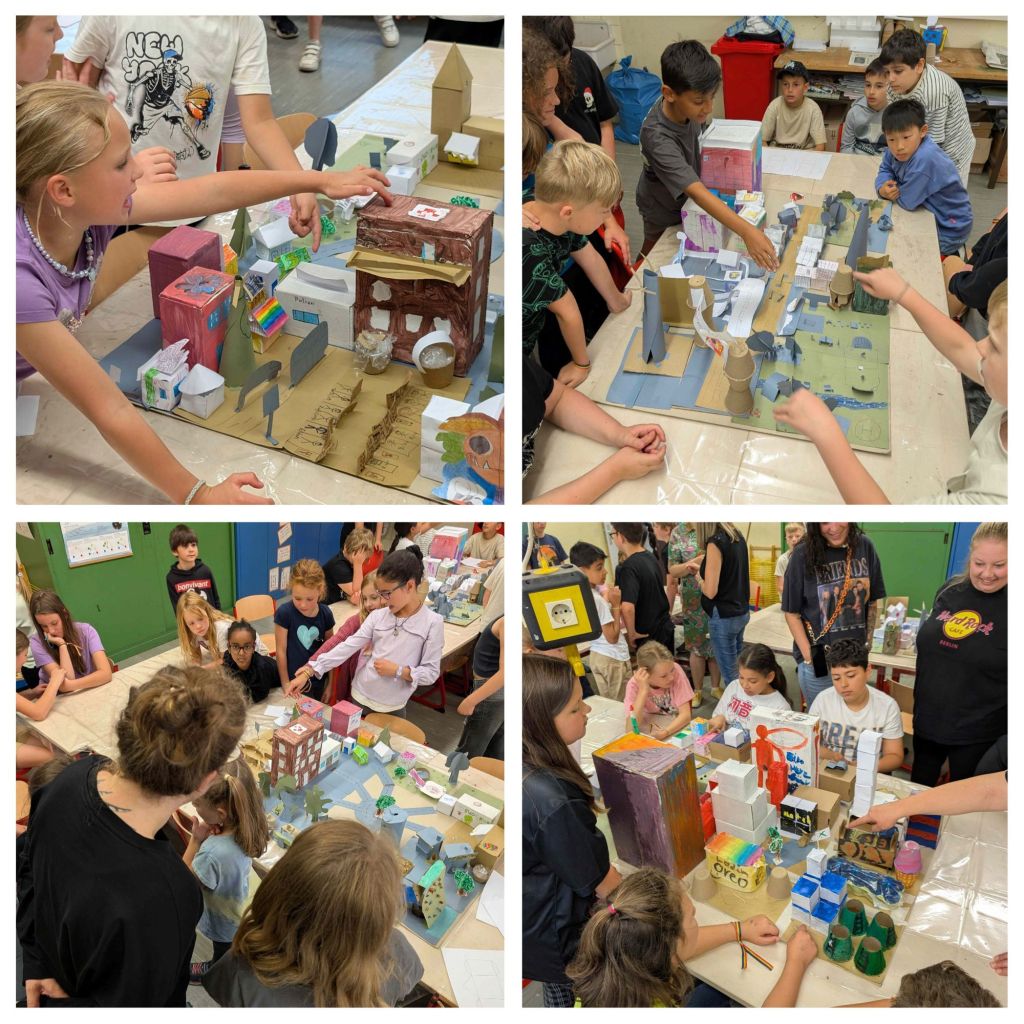 Die Idee: Wie sieht eine Stadt aus, die ganz aus der Fantasie entsteht? Die Kinder entwarfen und bauten aus Papier, Pappe und Farbe fantasievolle Stadtlandschaften. Dabei entstanden Spiele-Parks, verspielte Bauwerke und alles, was man für das Leben in der Stadt braucht – so individuell wie ihre Erfinder.