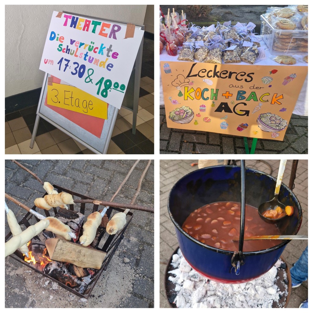 Bei frühlingshaftem Wetter und mit bester Laune genossen die Kinder und ihre Familien Punsch, Currywurst über dem Feuer, Waffeln, Stockbrot und ein wunderbares Theaterstück der Theater AG.